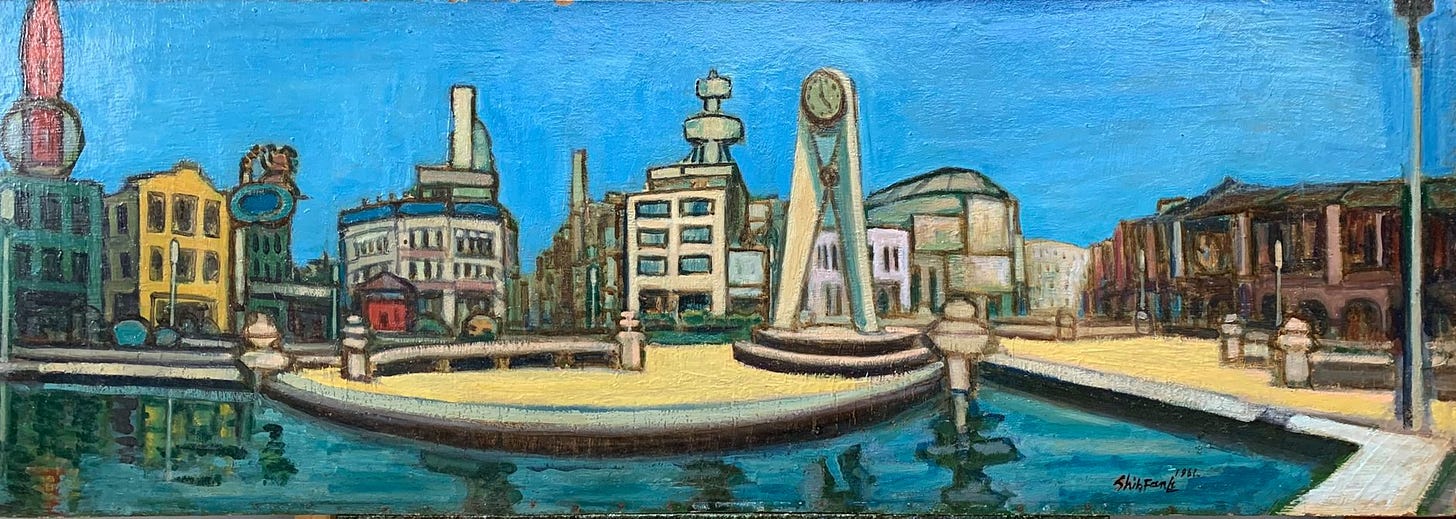 下方圖為《西門街大圓環》,鄭世璠,1961。(取自北師美術館臉書)
